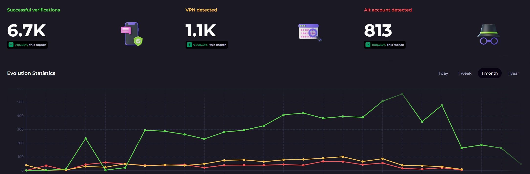 Dashboard analytics provide a real-time graph display of your servers verification activity.