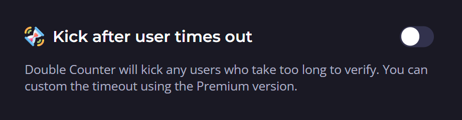 Double Counter will kick any user who takes too long to verify. With the free version of the bot, the timeout is 2 minutes after initiating the verification process, with the Pro Subscription, it would be 10 minutes (by default).