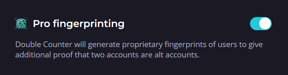 Fingerprinting scans across the entire database to look for specific similarities with other accounts. If an account matches the search criteria, they will share the same Fingerprint. Fingerprinting will be displayed as a series of randomized words. If two users share the same fingerprint, while not 100%, it is extremely likely that both accounts belong to, and are actively being used by, the same person. Fingerprinting runs completely separate from traditional alt detections.