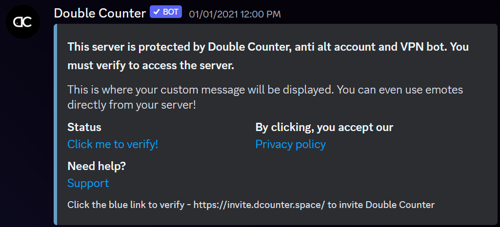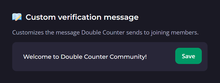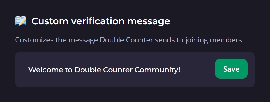 This feature is useful for welcoming and providing verification instructions to your newly joining members. The message will be displayed in the verification message the users receive prior to verifying.