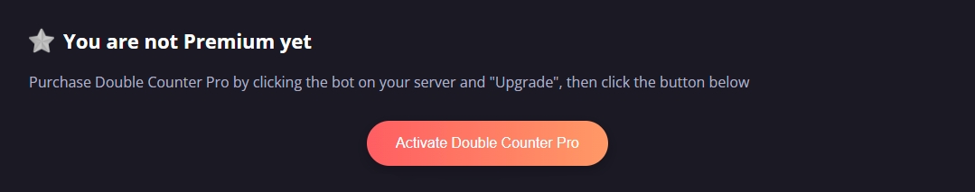 Double Counter Pro is now officially available directly through Discord. Upon successful payment, navigate to the Dashboard to activate your new subscription. To activate, click on the button. It's that easy!